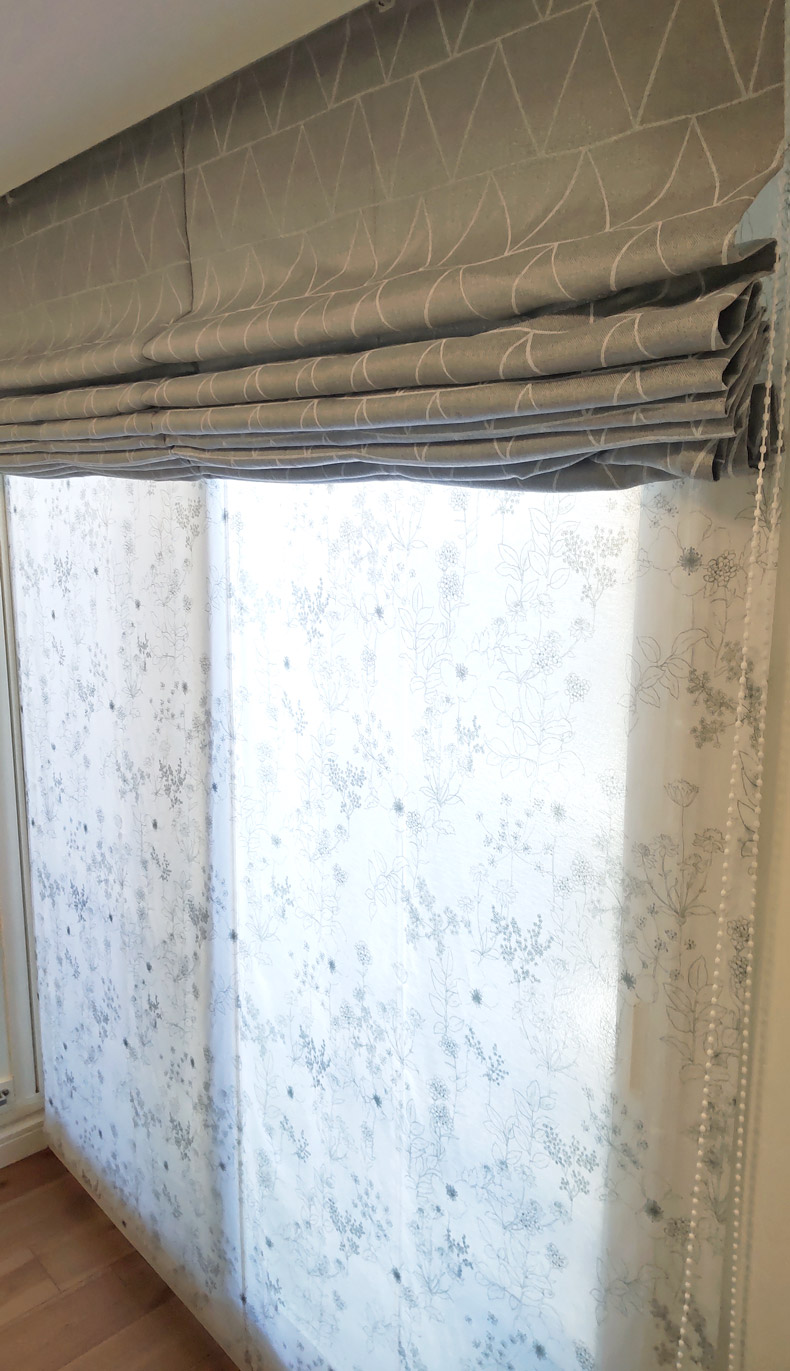 シェードの隣の窓はシェードと同じ生地でレースカーテンをお選びいただきました。