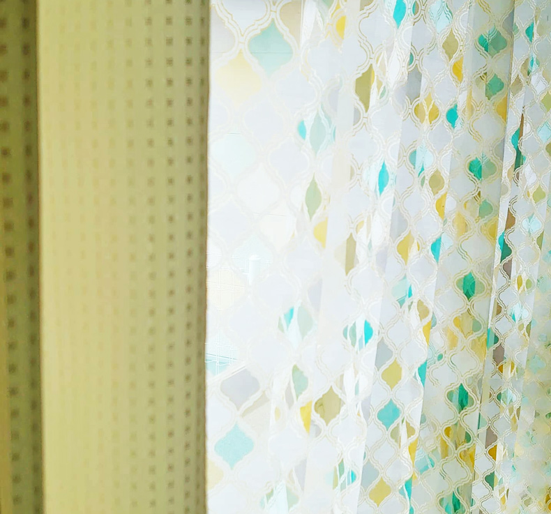 お天気や時間帯によって表情を変える、楽しみの多いレースカーテンです。