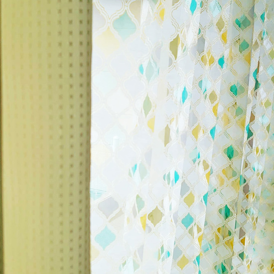 今回、淡いイエローの厚地カーテンとコーディネートされていて、とても相性が良いですね!