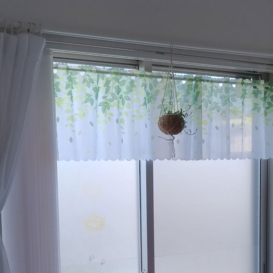 グリーンの葉がデザインされた綺麗なカフェカーテン <Leaf Wall – リーフ ウォール>