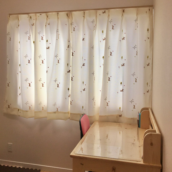セール対象となっている低価格のカーテンでしたが、届いてみると犬の刺繍が可愛らしく、私も子供達も大満足です。