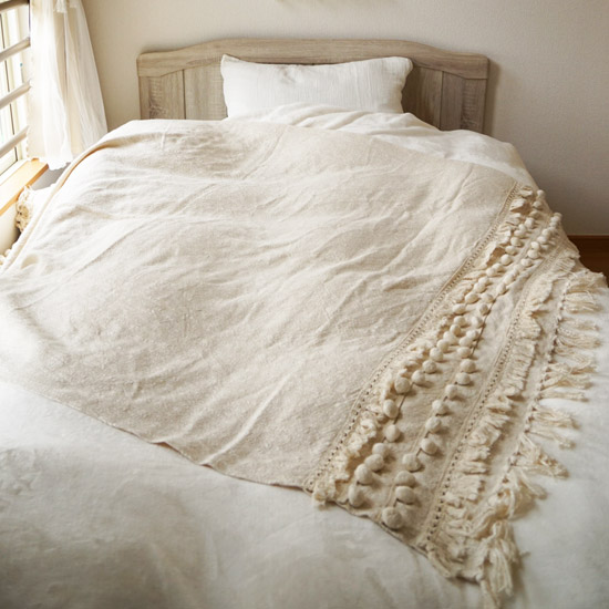 【Patati Patata】おしゃれなマルチカバー・ブランケット<ポムポムクロス -pompom cloth->がかわいくて一目惚れし、購入しました。