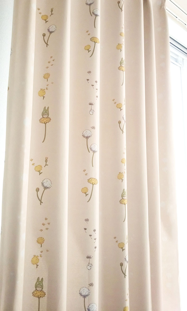 娘がとなりのトトロが好きで、トトロのカーテンを探していました。イラスト部分が控え目なので、リビングにも馴染むデザインになっており、満足しています。