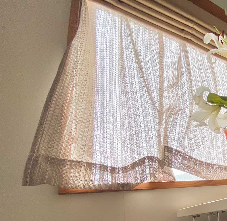 今までは白っぽいレースカーテンしか使ったことがなかったのですが、それとはまた違い温かい雰囲気になりとても気に入りました。