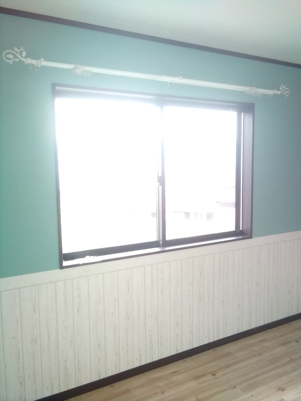 白木の壁と緑の壁のお色とアンティークなレールが見事にマッチしています(*’▽’)