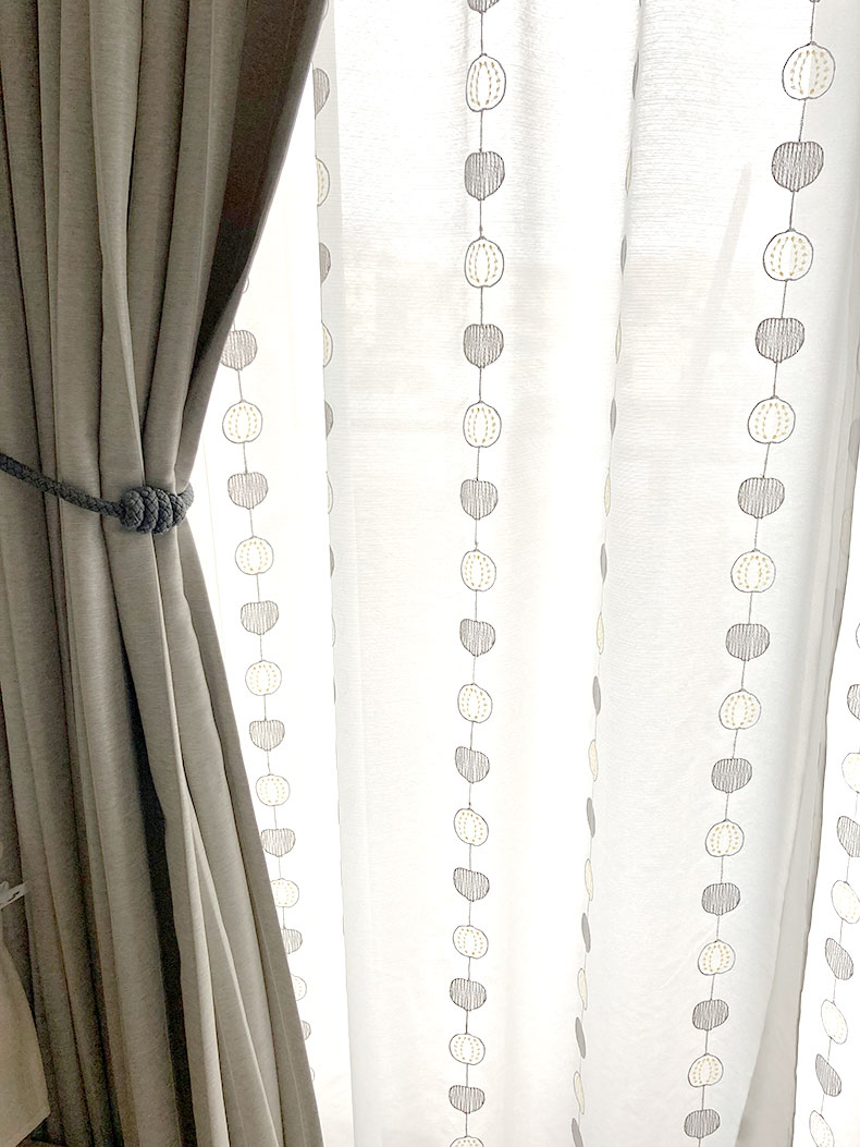 縦のラインに木の実が並んでいるので、厚地カーテンのラインとマッチしていてスッキリとした印象でコーディネートしていただいております(*^^*)