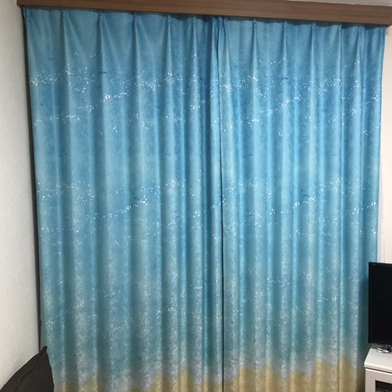 <モーニングビーチ>は当店で、とても大人気のカーテンです。