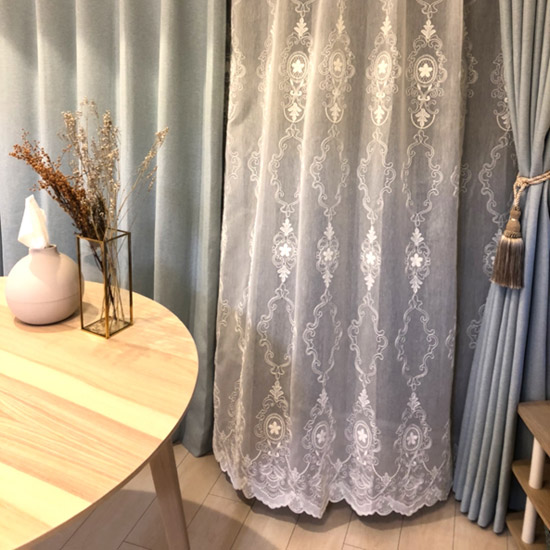 こういう刺繍の入ったレースのカーテンがあることを知りませんでしたし、ショールームに見に行けて、