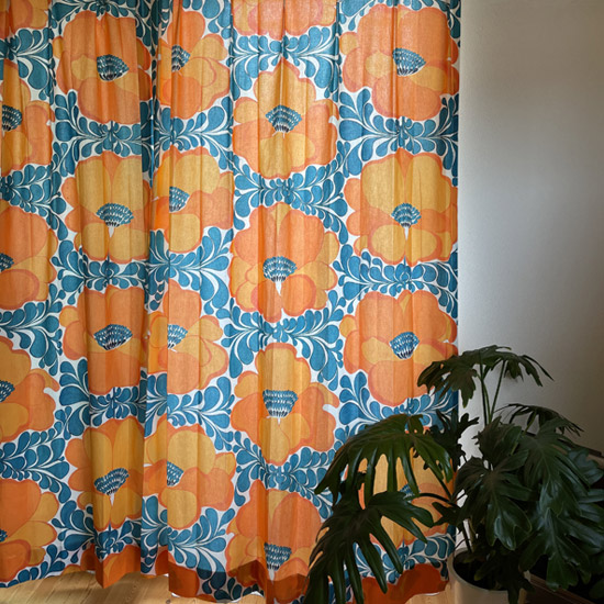北欧系の柄で大胆でとびきり明るいカーテンを探していて「びっくりカーテン」様のサイトに辿り着きました。