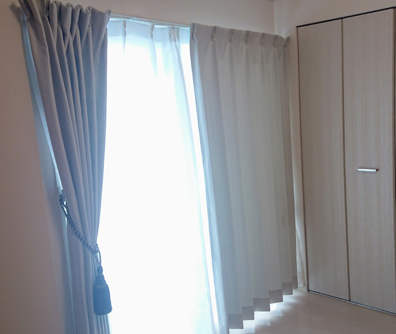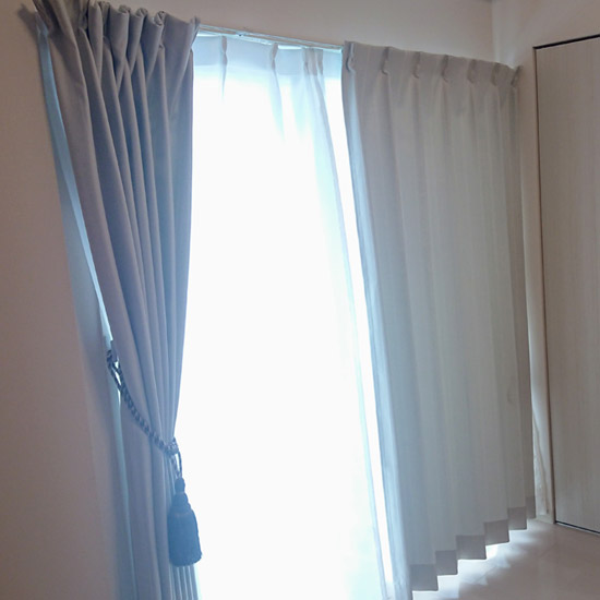 選んでいただきましたカーテンは遮光の仕組み上、真っ白でご用意することが難しいとされていたものですがそれを覆したカーテンです。