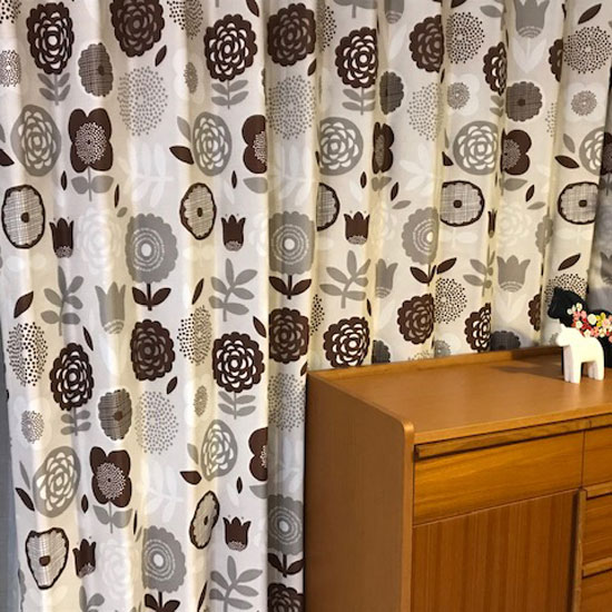 今回お選びいただいた<ソポクッカ ブラウン>はキュートな花柄デザインがお窓いっぱいに広がりお部屋全体が華やかで温かみの印象になります。