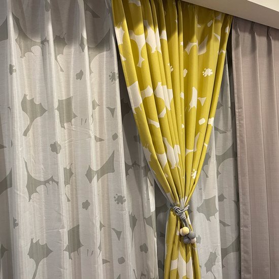 実際に手元にカーテンが届いて設置したところ、2種類のカーテンを組み合わせたことで変化がでてとってもかわいいです!