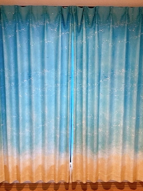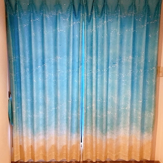 ご注文いただきました<モーニングビーチ>でお部屋に海が出来たとのこと、