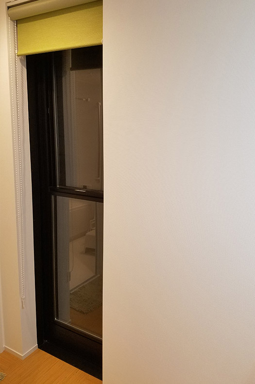 干渉を避けるため、生地の降りる方向を手前側になるよう逆(逆巻き仕様)でご用意させて頂きました。