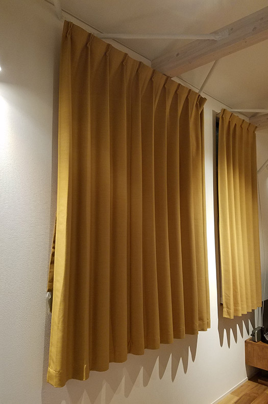 カチオン染めで表情のある生地はお部屋に馴染みやすいカーテンです。