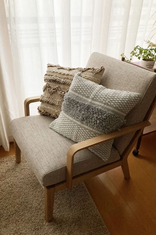 お客様よりクッションカバー<ジグザグポコ>、<ナチュラルモコ>のご感想をいただきました♪