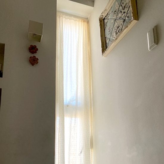 階段脇の明かり取り窓で、横が40cm弱に対して縦が200cm以上と既製品ではあり得ないサイズなので、