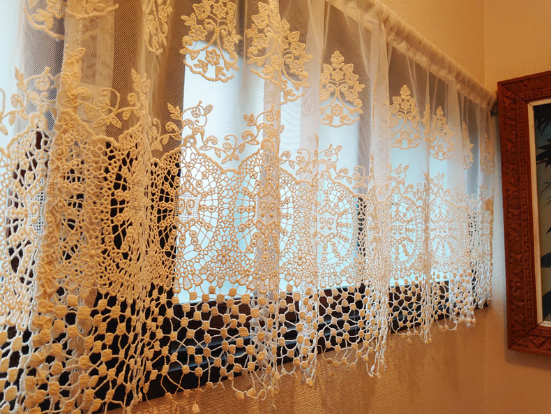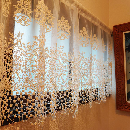 透き通った生地と裾の可愛らしさが特徴的なカフェカーテンでさまざまな小窓にオススメです!