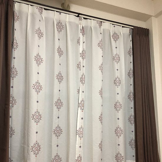ペイズリーモチーフを密度の高い刺繍で印象的に仕上げたレースカーテンです。