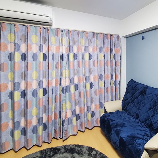 <レンミッキ ブルー>は、ナチュラルであたたかみのある北欧の暮らしをイメージしたデザインのカーテンです(*^-^*)