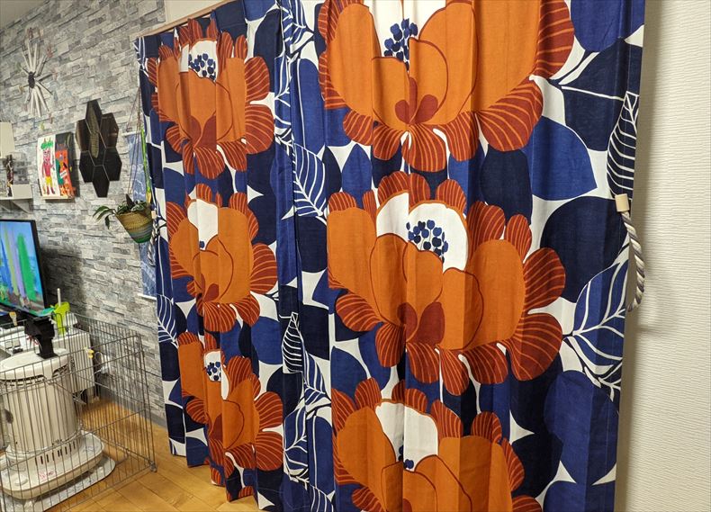 これまで無地のカーテンでしたので、部屋が明るく華やかになりました。
