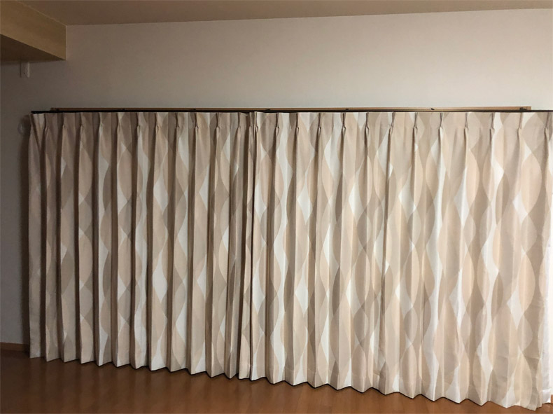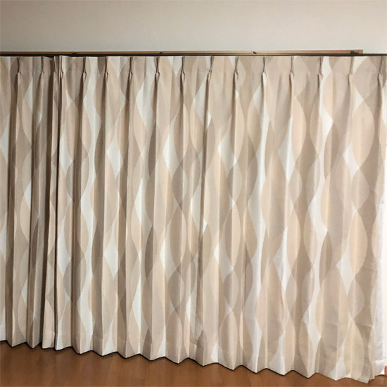 お客様より遮光2級・形状記憶加工カーテン<スパイラル ベージュ>と