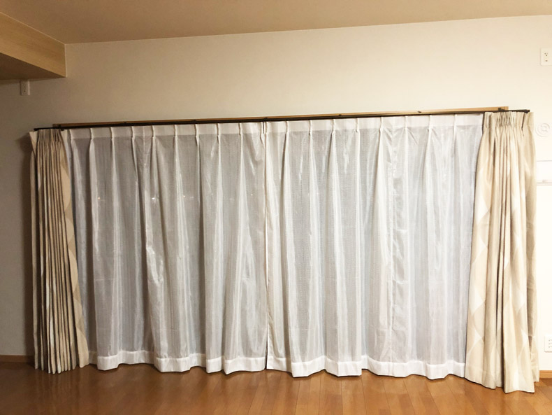 まだ引っ越し前で家具も殆どないのでカーテンの存在感が余計引き立ってます。
