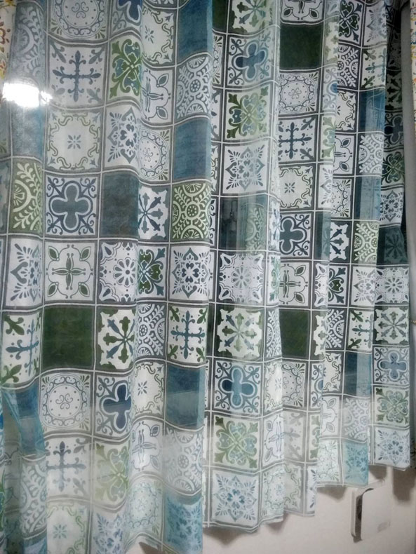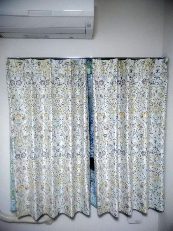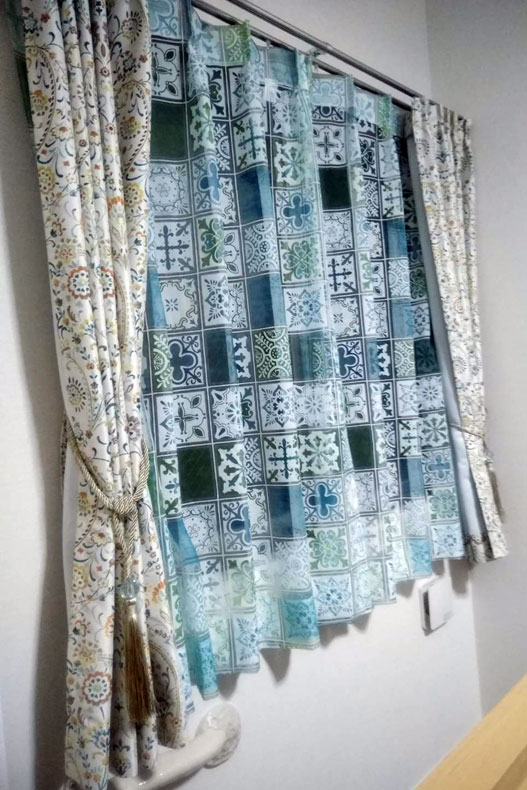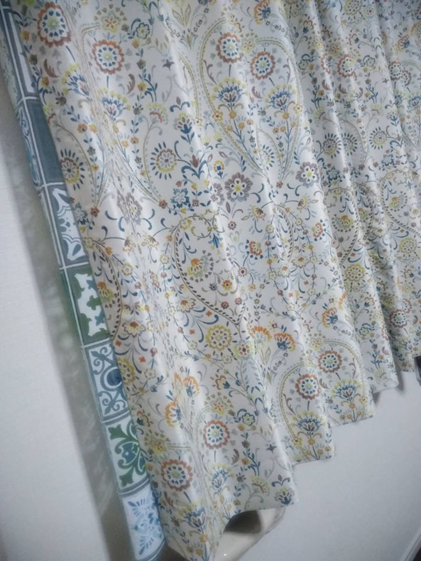 ある程度インパクトある柄なので、小さ目の窓のカーテンに使うと