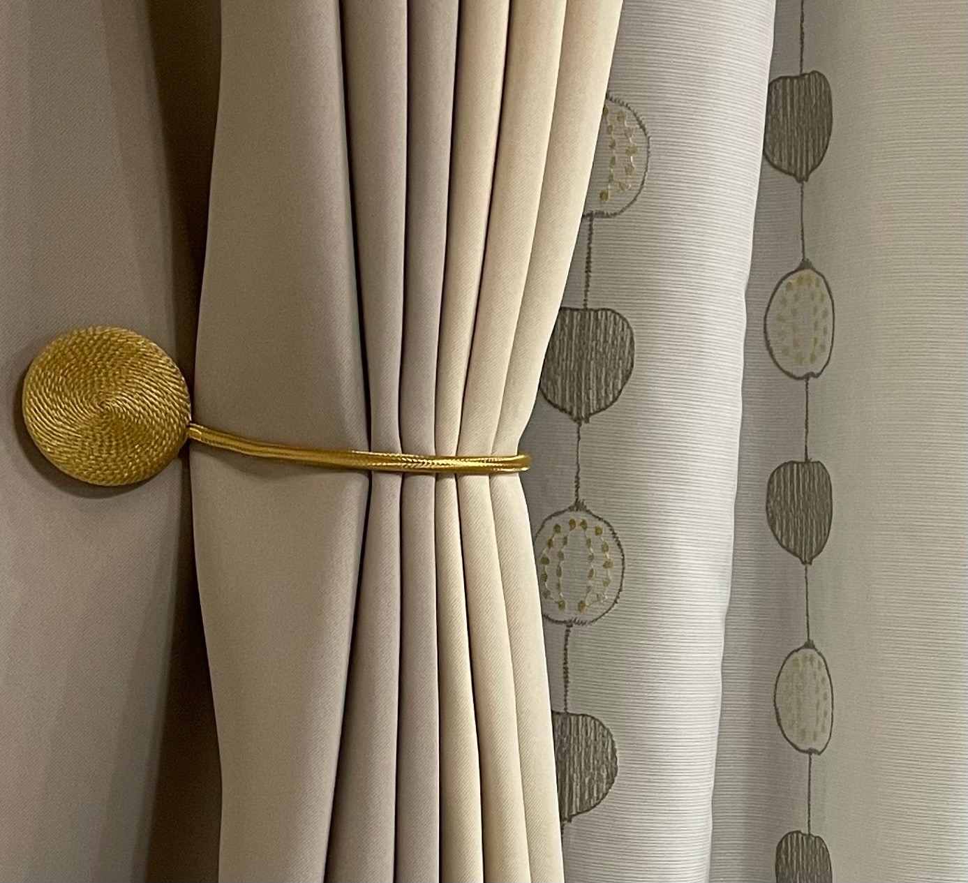 隣り合わせる幅広のお窓にご使用頂き、お手持ちの厚地カーテンやタッセルともマッチしており
