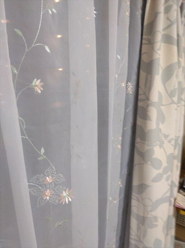 また、別の窓のレースカーテンもお手持ちのカーテンとの色合いやお花のデザインも素敵にマッチして癒されます♪
