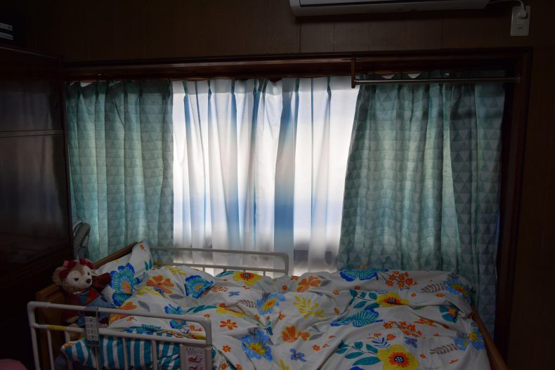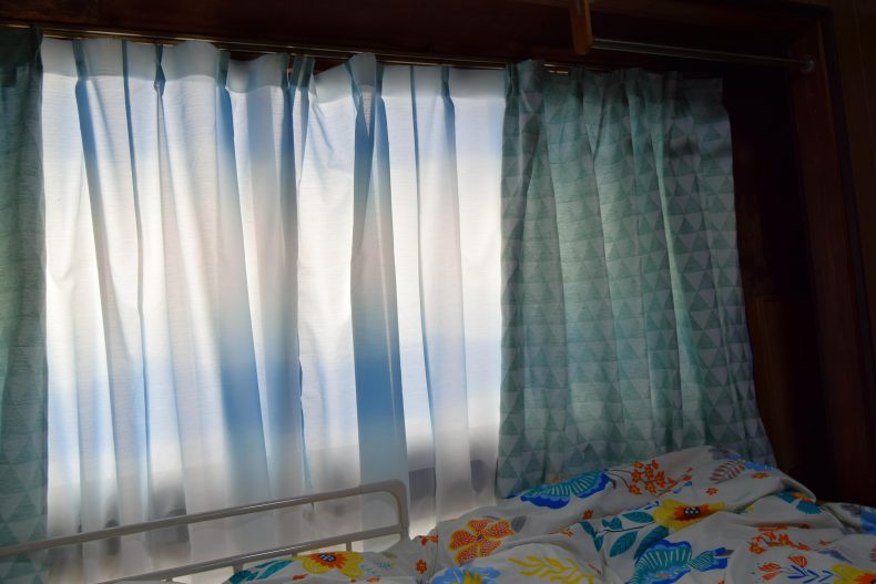 私は病人なので介護用ベッドを使用しています。どうしても部屋が暗くなりがちなので思い切り明るい北欧らしい雰囲気の商品をチョイスいたしました。私はデンマークに5年ほど滞在していたので、「白夜の夏の太陽の日差しの楽しみ」がテーマのつもりです。