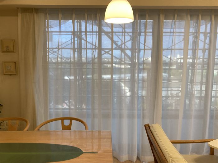 透け感を大事にしている生地でございますので夕方などはどうしてもお部屋の中が見えやすくなってしまうというところと