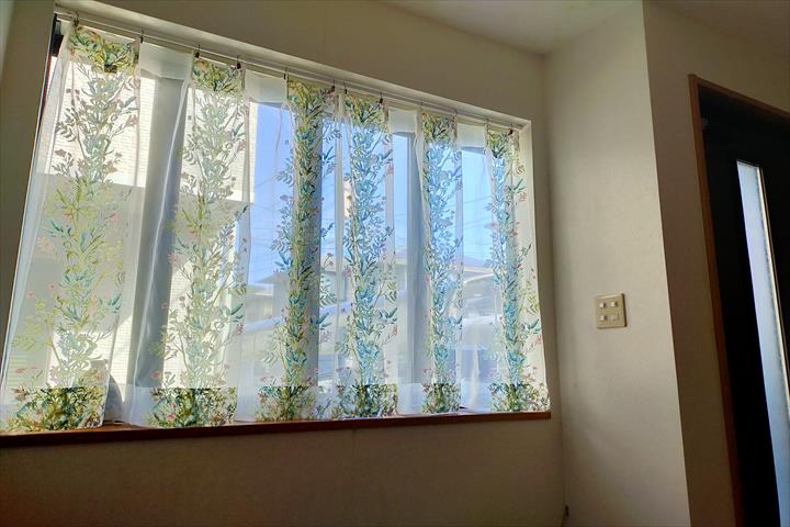 玄関出窓のカーテンが古くなり、こちらのカーテンがとても素敵で一目惚れしてオーダーさせて頂きました。