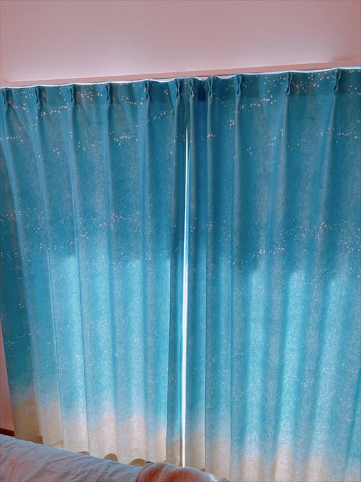 お選びいただきました<モーニングビーチ>は当店オリジナルデザインのカーテンでございます。