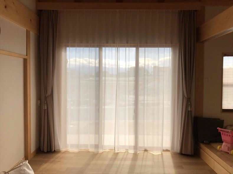 裾のウェイトロック加工が標準仕様になっておりますので、今回のように大きなお窓でもスッキリとした見た目にすることが可能です!