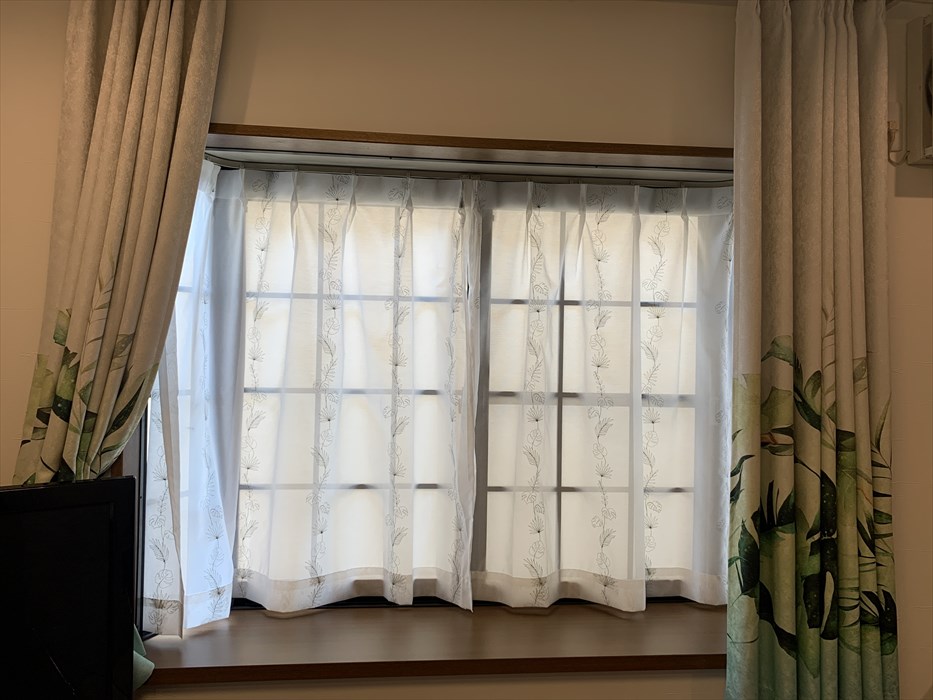 あわせてご注文頂きました<レースグリー>も厚地と同じくボタニークシリーズのレースカーテンでございます。