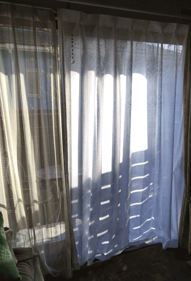 右側が新調したカーテンです。すごく落ち着きます。以前は外を歩いている人が丸分かりでした。
