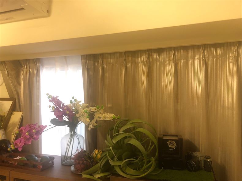 形状記憶付きのカーテンですのでヒダがきれいにみえるのもポイントでございます。