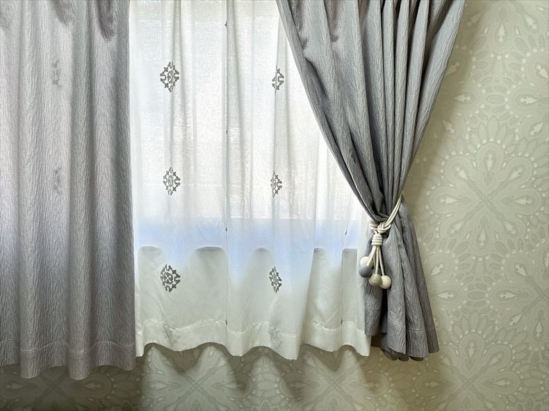 新しいカーテンと壁紙を選んでコーディネートするのはとても楽しい作業でした♪