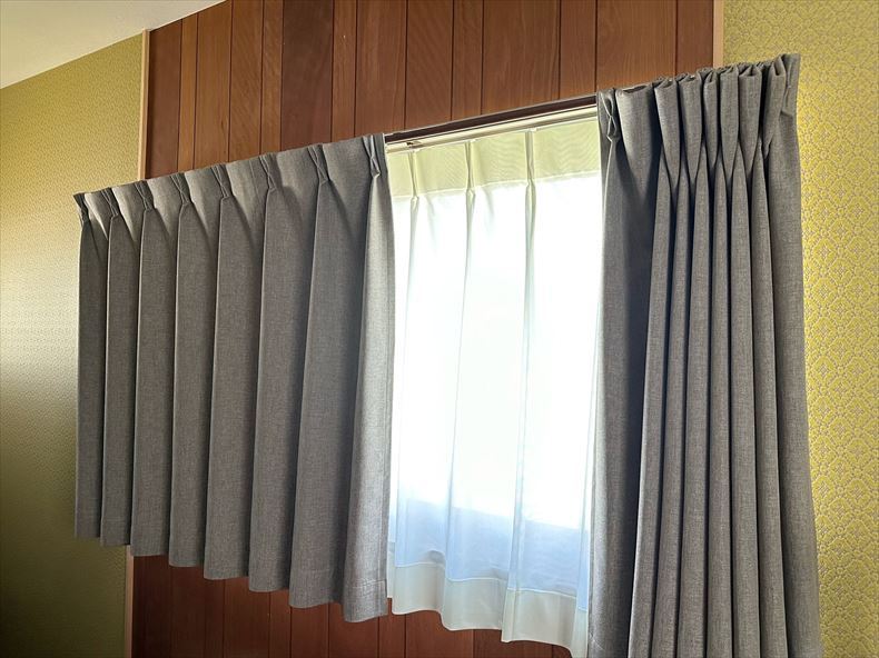 築年数の古いお家へ引っ越すこととなり、新居のカーテンは、以前からホームページを拝見していてサンプルを送ってもらったりお店におじゃましたことがあるびっくりカーテンさんで、と決めていました。
