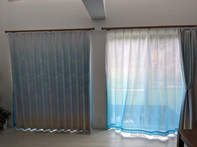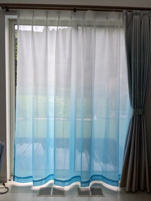カーテンは名前の通り、濃くも薄くもない丁度良いくらいの青さです。