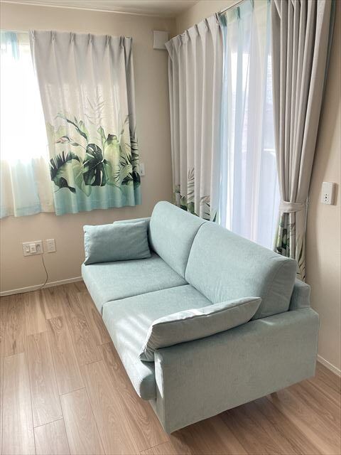 カーテンに合わせて頂いたソファーのお色も優しいお色で雰囲気にぴったりでございますヾ(≧∀≦)ノ