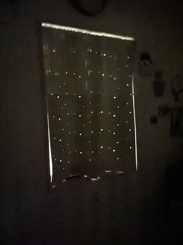 夜になると真向かいのマンションの非常灯が室内に入り込む為に過ごしにくく、遮光カーテンを検討していましたが、こちらのカーテンはこれまで不快に感じていた非常灯が星と月の切り抜きを通すとキラキラと輝き、とても良い感じです。