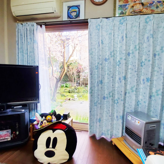 この度ミッキーマウス柄のカーテンを付け替えて部屋が明るくなりました。