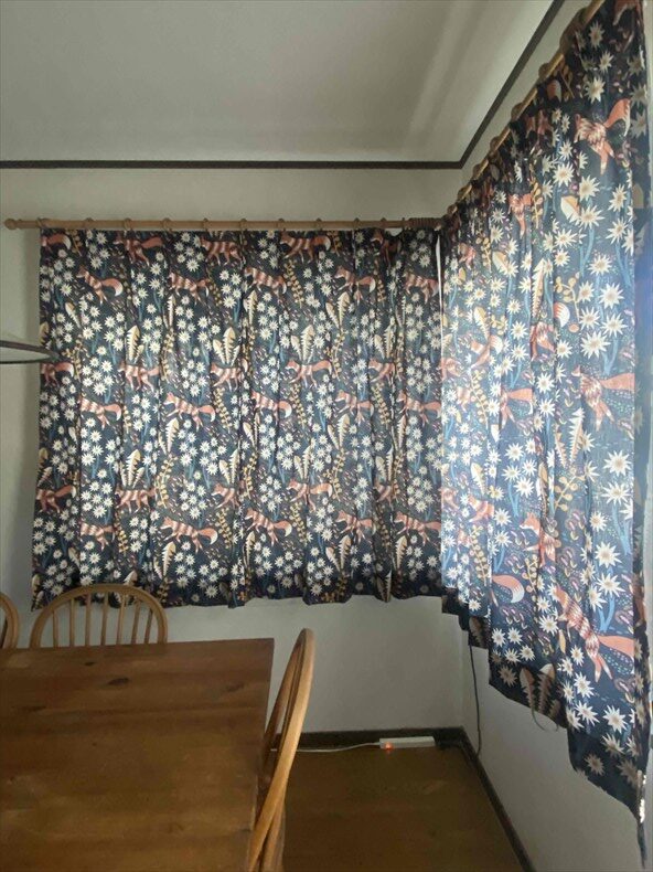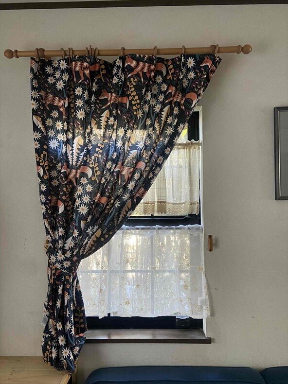 非遮光なので、生地がネイビーと深い色ですが重たく見えないところも、お気に召していただいているようで、嬉しい限りでございます。