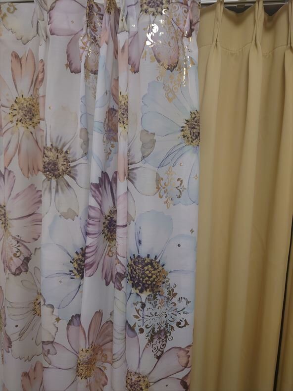 どちらもお花柄のとっても可愛いレースカーテンですので、無地の【フォーシーズン】に合わせるとデザインがより引き立ちますね♪