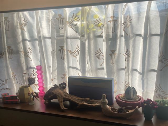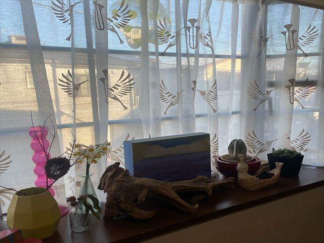 窓辺に飾られた流木やオブジェとハチドリの神秘的な雰囲気がぴったりですねヾ(≧∀≦)ノ゙