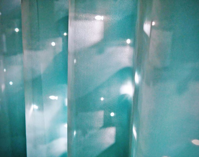 <シャイン インザシー ブルー>お魚や泡の形をくり抜いたカーテンでございます。