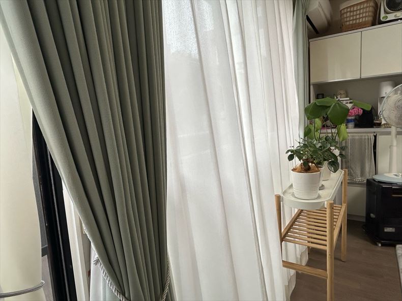 今、厚地のカーテン、ヌップグリーンの到着待ちです。