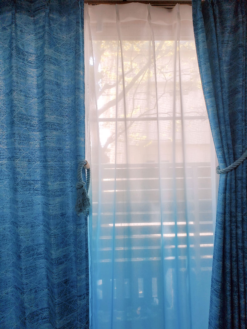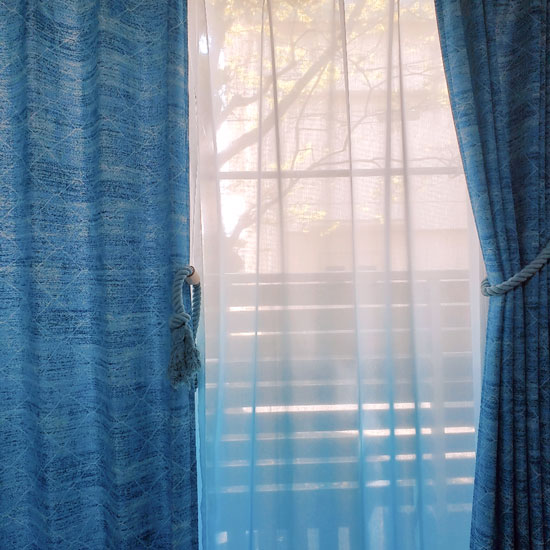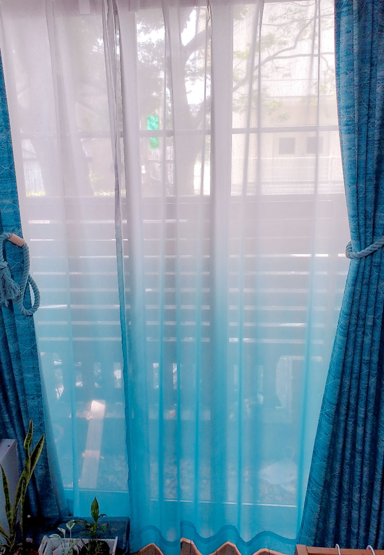 白からブルーのグラデーションがお窓にかけていただくことで光に当たりより美しくお窓を演出してくれます。